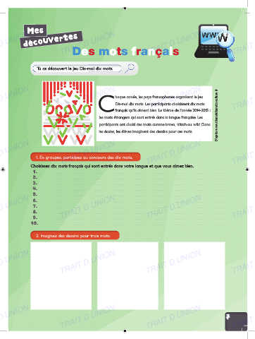 TRAIT D UNION TRAIT D UNION haque année, les pays francophones organisent le jeu TRAIT D UNION