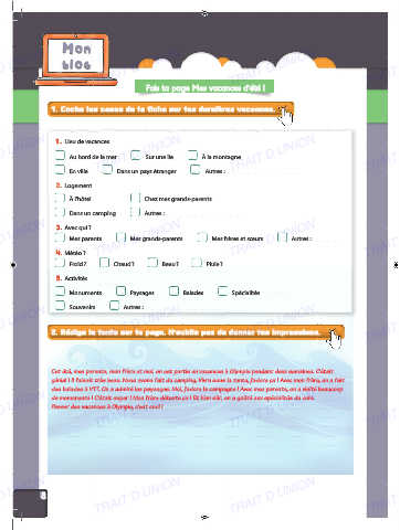 1. Coche les cases de ta fiche sur tes dernières vacances.