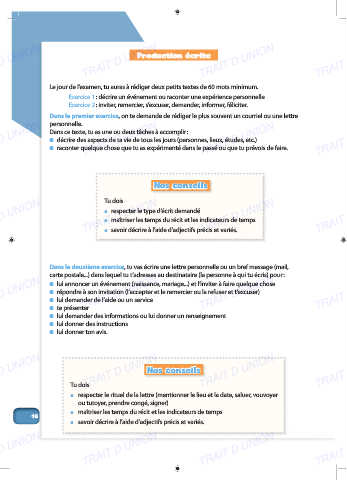 Le jour de l’examen, tu auras à rédiger deux petits textes de 60 mots minimum.